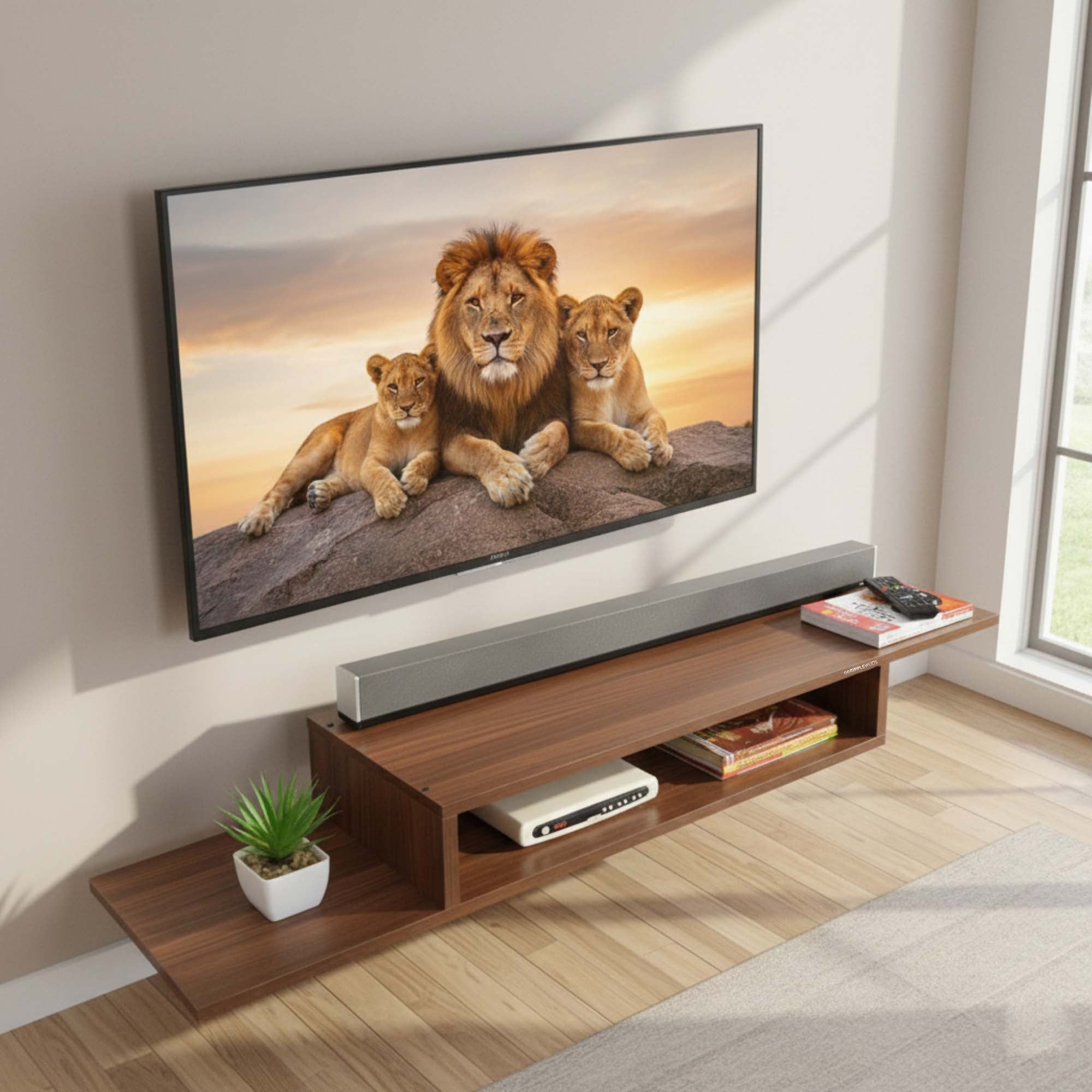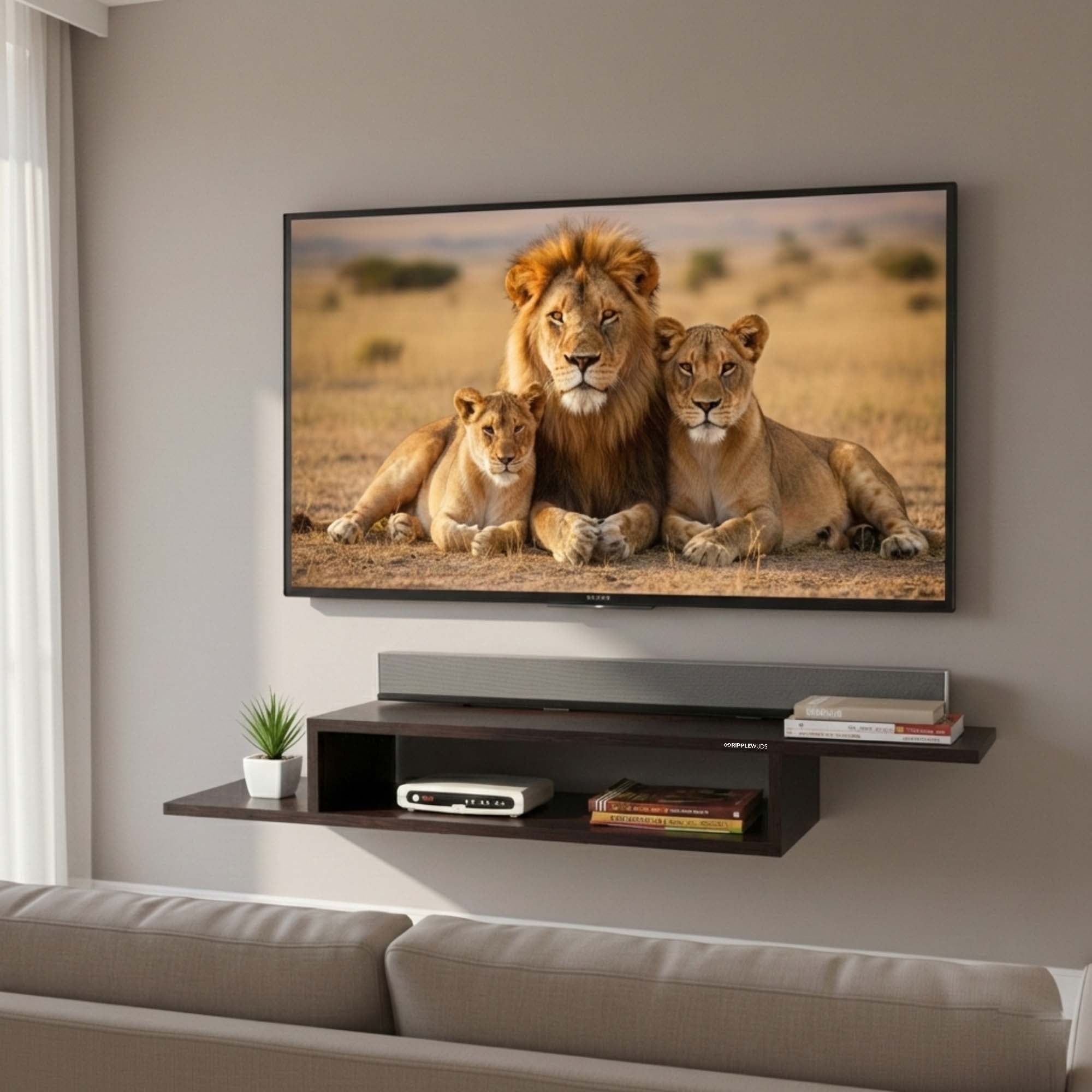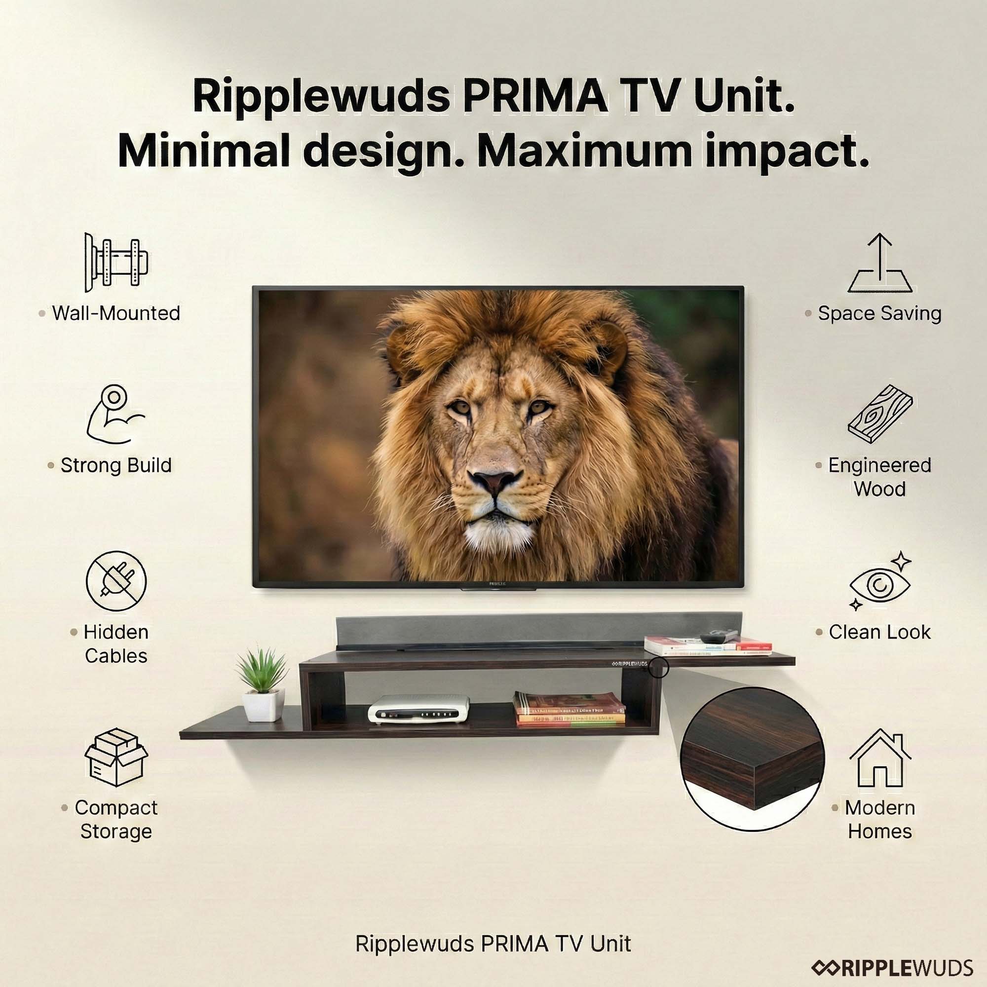 - Prima TV unit shelf from Ripplewuds is a perfect wall mounted entertainment center for your living room which adds a touch of elegance and sophistication to your décor theme to make your home classy and stylish.